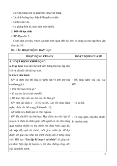 - Biết cách lập kế hoạch cá nhân và lập được kế hoạch cá nhân của bản thân trong học tập và cuộc sống. 2. Năng lực