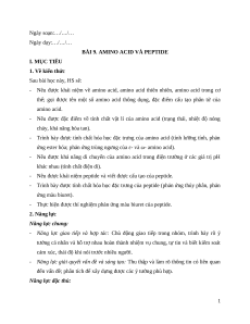 BÀI 9. AMINO ACID VÀ PEPTIDE I. MỤC TIÊU 1. Về kiến thức Sau bài học này, HS sẽ: