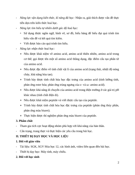 - Thực hiện được thí nghiệm phản ứng màu biuret của peptide. 2. Năng lực