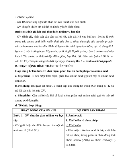 Giáo án Bài 9 Hóa học 12 Kết nối tri thức: Amino acid và peptide