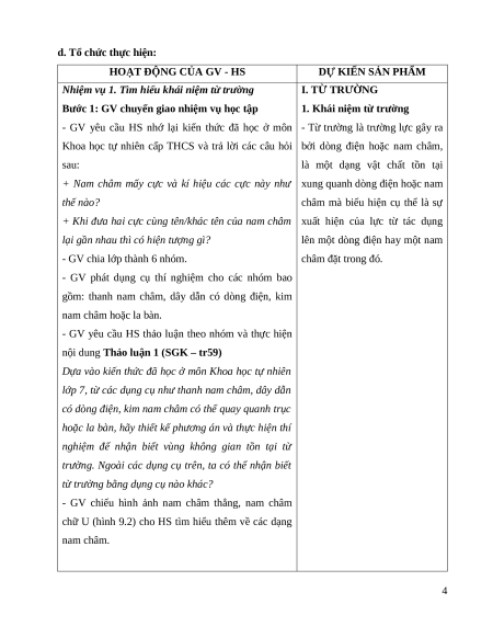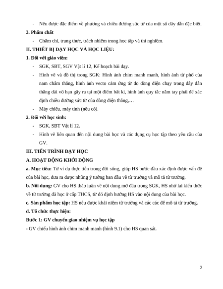 - Năng lực giải quyết vấn đề: Xác định và tìm hiểu về từ trường; tiến hành thí