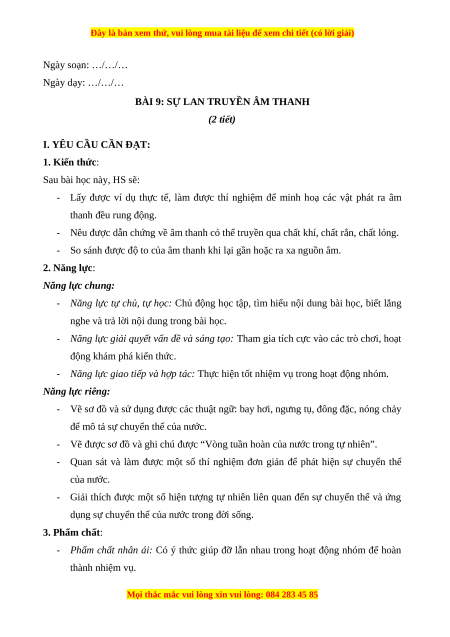 BÀI 9: SỰ LAN TRUYỀN ÂM THANH (2 tiết)
