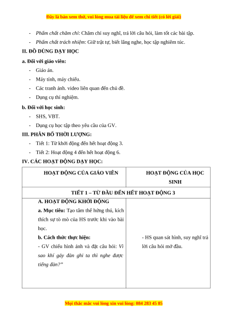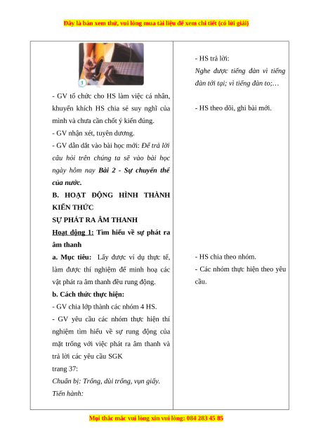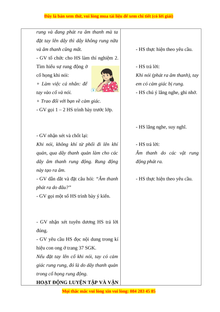 B. HOẠT ĐỘNG HÌNH THÀNH KIẾN THỨC SỰ PHÁT RA ÂM THANH