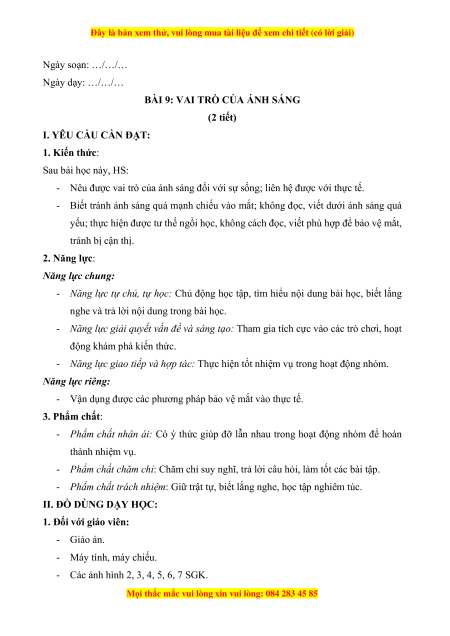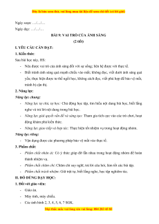 BÀI 9: VAI TRÒ CỦA ÁNH SÁNG (2 tiết)