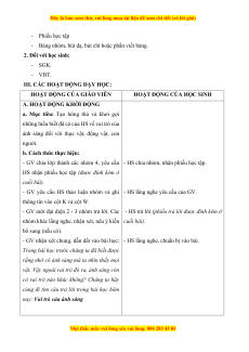 - Phẩm chất nhân ái: Có ý thức giúp đỡ lẫn nhau trong hoạt động nhóm để hoàn thành nhiệm vụ.