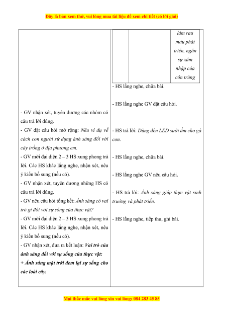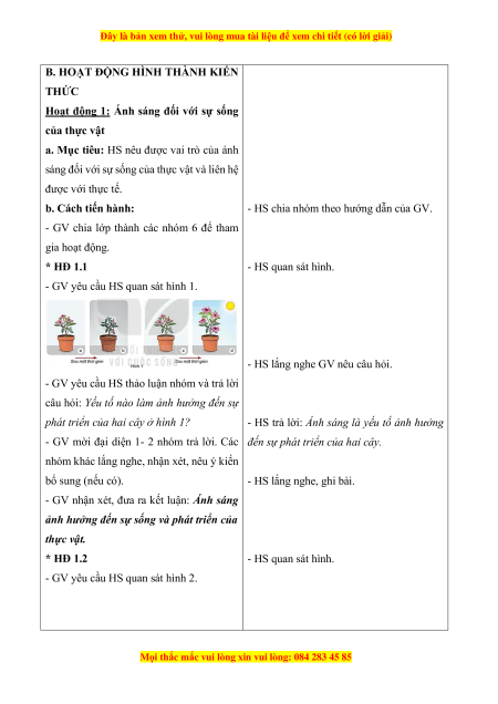sáng đối với sự sống của thực vật và liên hệ được với thực tế. b. Cách tiến hành: