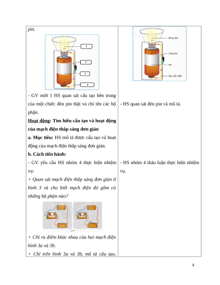 động của mạch điện thắp sáng đơn giản. b. Cách tiến hành: