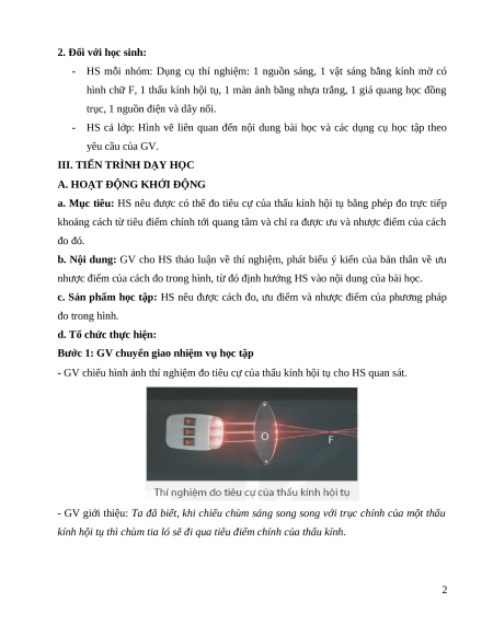 - Đo được tiêu cự của thấu kính hội tụ bằng dụng cụ thực hành. 2. Năng lực