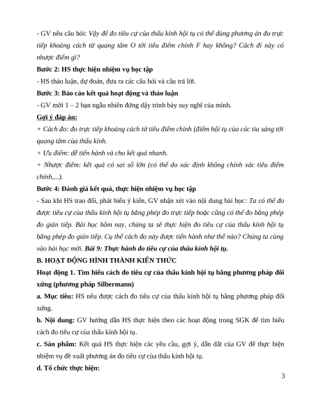 - GV nêu câu hỏi: Vậy để đo tiêu cự của thấu kính hội tụ có thể dùng phương án đo trực