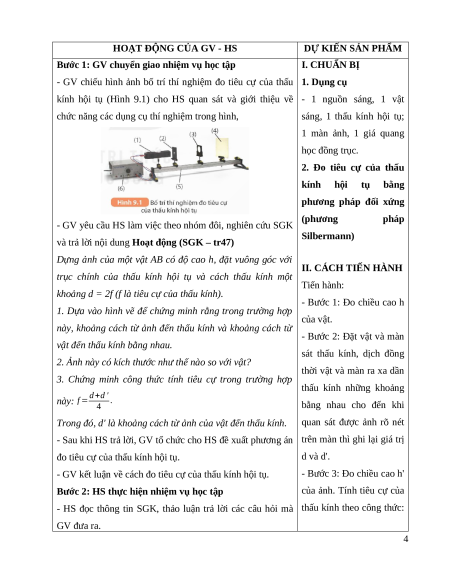 Giáo án Bài 9 KHTN 9 Kết nối tri thức (2024): Thực hành đo tiêu cự của thấu kính hội tụ