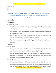 CHỦ ĐỀ 7: QUYỀN BÌNH ĐẲNG CỦA CÔNG DÂN TRƯỚC PHÁP LUẬT