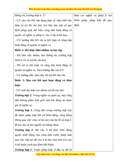 + Nhóm 3, 4: Công dân bình đẳng về quyền và