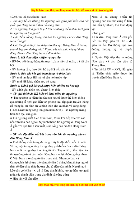 49,50, trả lời các câu hỏi sau: Nam Á có chung nhiều tín