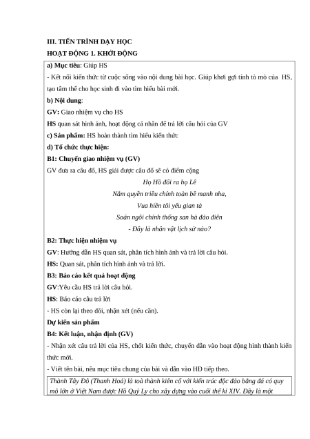 Giáo án Bài 9 Lịch sử 11 Kết nối tri thức (2024): Cuộc cách mạng của Hồ Quý Ly và Triều Hồ