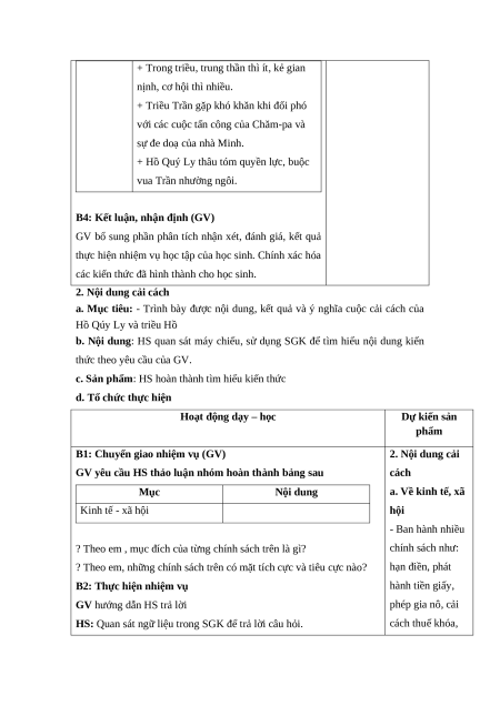 cảnh, nội dung chính và kết quả cuộc cải cách của Hồ Quý Ly và Triều Hồ thông qua bài học hôm nay.