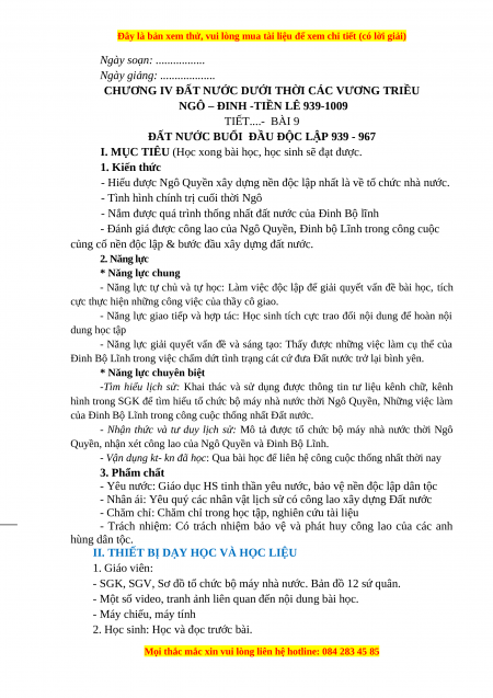 NGÔ – ĐINH -TIỀN LÊ 939-1009 TIẾT....- BÀI 9
