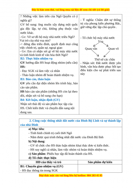- Nắm được quá trình thống nhất đất nước của Đinh Bộ lĩnh b) Nội dung:
