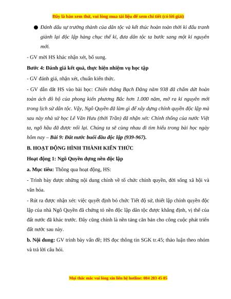 BÀI 9: ĐẤT NƯỚC BUỔI ĐẦU ĐỘC LẬP (939-967)