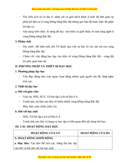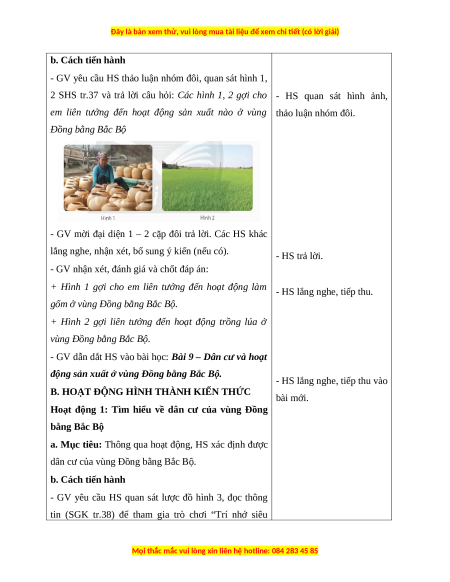 Giáo án Bài 9 Lịch sử & Địa lí lớp 4 Chân trời sáng tạo: Dân cư và hoạt động sản xuất ở vùng đồng bằng Bắc Bộ