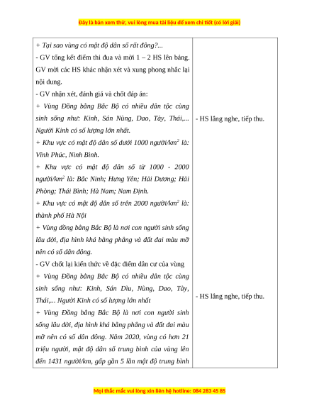 dân cư của vùng Đồng bằng Bắc Bộ. b. Cách tiến hành