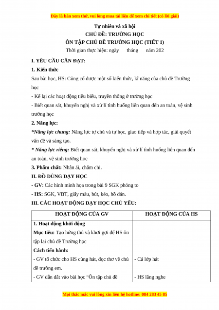 Giáo án Bài 9: Ôn tập chủ đề trường học Tự nhiên và xã hội lớp 3 Chân trời sáng tạo