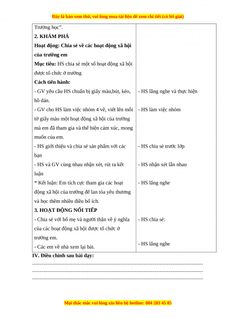 Hoạt động: Chia sẻ về các hoạt động xã hội của trường em