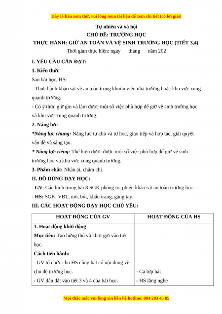 THỰC HÀNH: GIỮ AN TOÀN VÀ VỆ SINH TRƯỜNG HỌC (TIẾT 3,4)