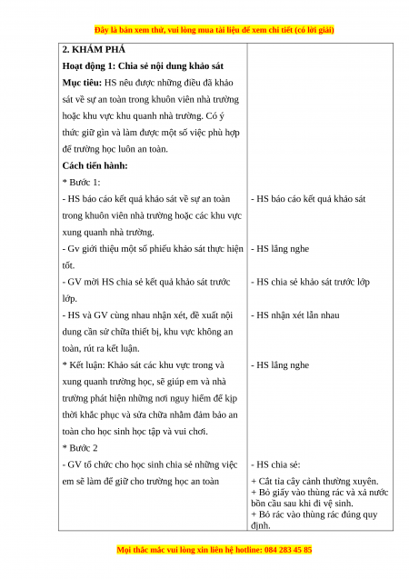 - Biết quan sát, khuyến nghị và xử lí tình huống liên quan đến an toàn, vệ sinh trường học 2. Năng lực: