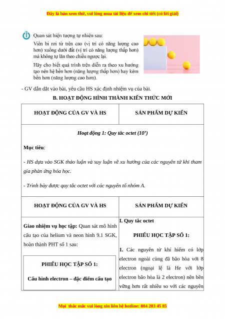Giáo án Bài 9: Quy tắc Octet Hóa học 10 Cánh diều
