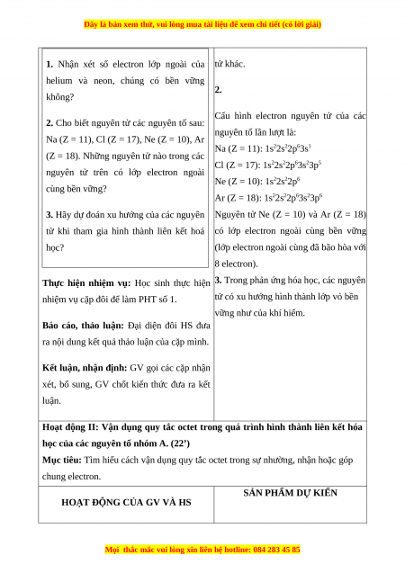 + Trình bày được quy tắc octet với các nguyên tố nhóm A.