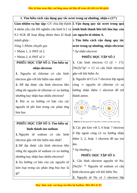 Mục tiêu: Tìm hiểu cách vận dụng quy tắc octet trong sự nhường, nhận hoặc góp