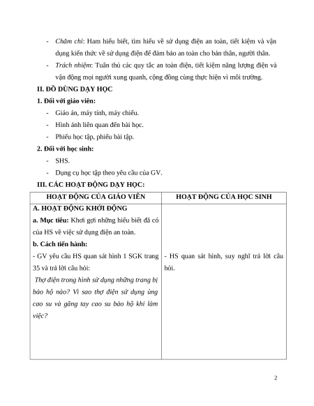 - Chăm chỉ: Ham hiểu biết, tìm hiểu về sử dụng điện an toàn, tiết kiệm và vận
