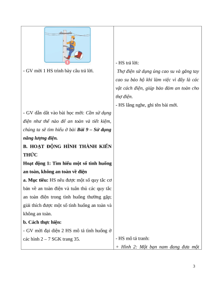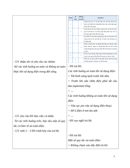 của HS về việc sử dụng điện an toàn. b. Cách tiến hành: