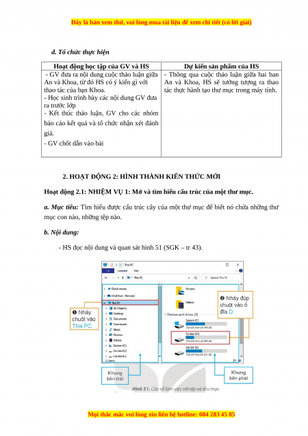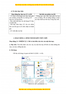 Hoạt động 2.1: NHIỆM VỤ 1: Mở và tìm hiểu cấu trúc của một thư mục.