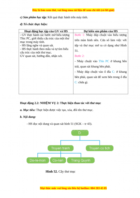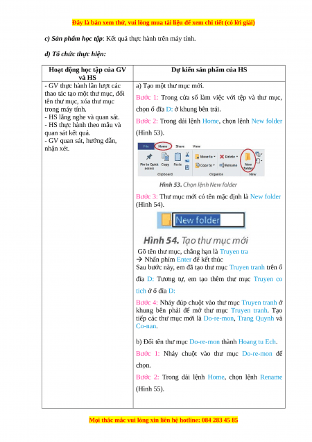 lưu ở dạng tệp và thư mục cùng thao tác thực hành tạo các thư mục trên máy tính. b. Nội dung