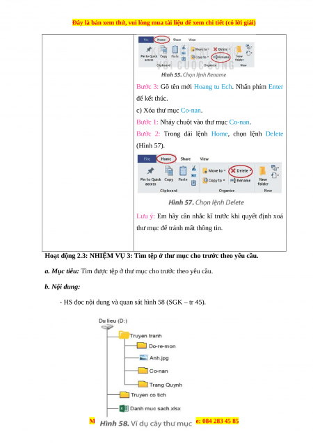 a. Mục tiêu: Thực hiện được việc tạo, xóa, đổi tên thư mục. b. Nội dung: