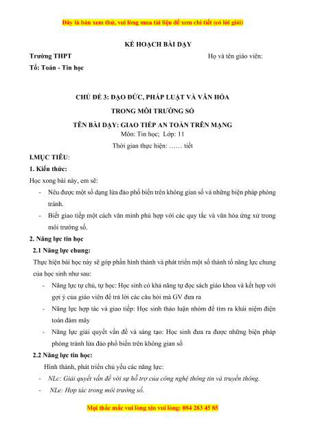 TÊN BÀI DẠY: GIAO TIẾP AN TOÀN TRÊN MẠNG Môn: Tin học; Lớp: 11