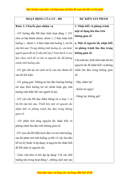 a) Mục tiêu: Nêu được một số dạng lừa đảo phổ biến trên không gian số và những biện pháp phòng tránh.