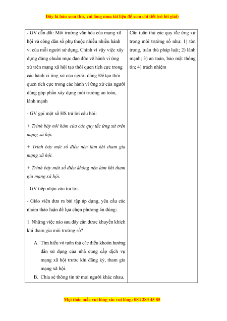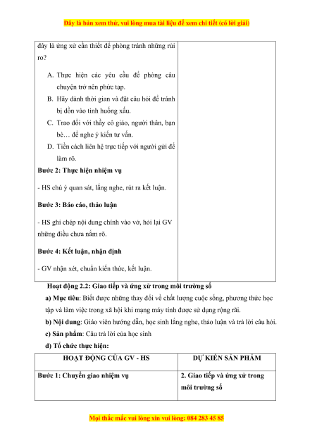 Hoạt động 2.2: Giao tiếp và ứng xử trong môi trường số