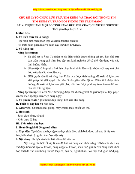 - HS thực hành phân loại và đánh dấu thư điện tử Gmail. 2. Về năng lực: - Năng lực chung: