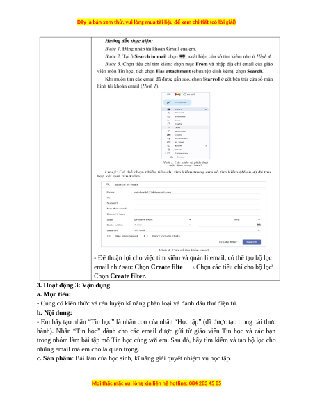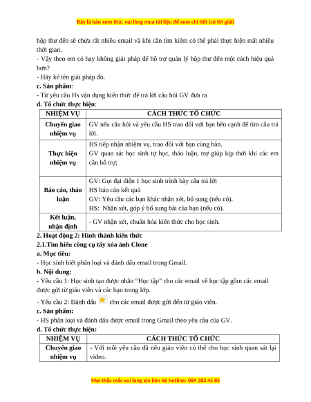 - Học sinh biết phân loại và đánh dấu email trong Gmail. b. Nội dung: