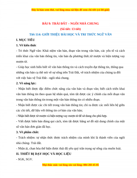 II. THIẾT BỊ DẠY HỌC VÀ HỌC LIỆU