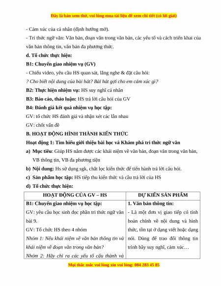 - Tri thức Ngữ văn: Khái niệm văn bản, đoạn văn trong văn bản, các yếu tố và cách