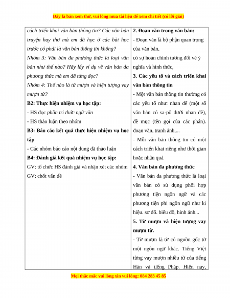 triển khai của văn bản thông tin, văn bản đa phương thức.từ mượn và hiện tượng vay mượn từ.