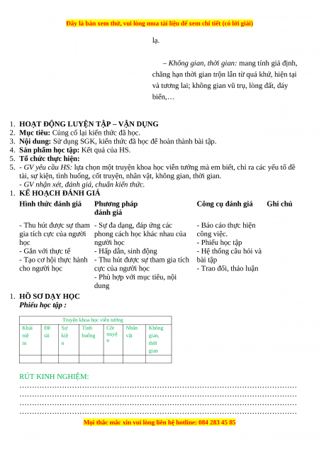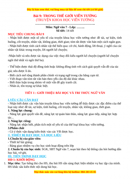 1. Mục tiêu: Nắm được các khái niệm về truyện khoa học viễn tưởng, một số yếu tố của truyện