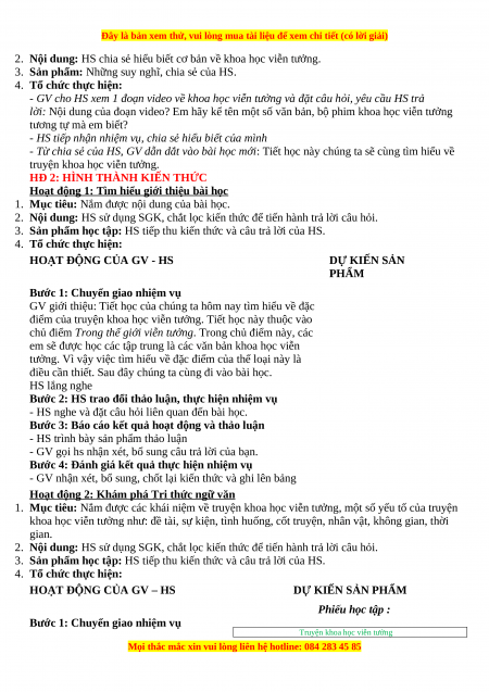 2. Nội dung: HS chia sẻ hiểu biết cơ bản về khoa học viễn tưởng.