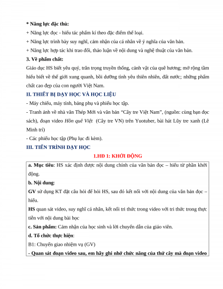 - Viết được đoạn văn khát quát giá trị nội dung và nghệ thuật của văn bản “Cây tre Việt Nam”. 2. Về năng lực * Năng lực chung: