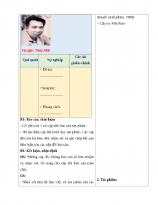 -Điền những thông tin về tác giả Thép Mới vào Việt Nam, chuyên viết về đề tài