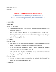 - Trình bày được vai trò và triển vọng của thủy sản trong bối cảnh cuộc cách mạng công nghiệp 4.0.