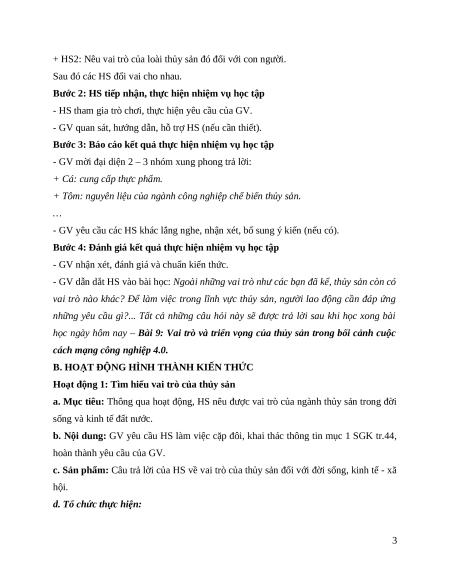hiểu về vai trò và triển vọng của thủy sản. 3. Phẩm chất 1